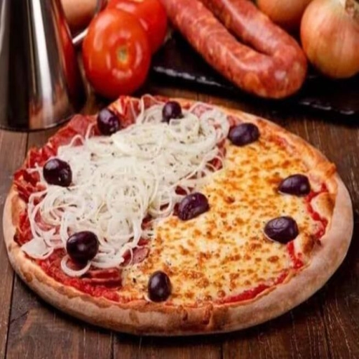 Pizza Grande.Massa fina.Bem assada. 1/2 Marguerita 1/2 Calabresa Acebolada (Não Realizamos Alterações Na Promoção)