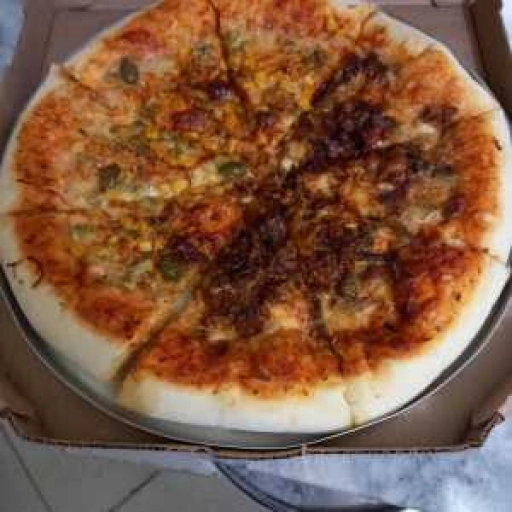 Pizza Grande.Massa fina.Bem assada. 1/2 Calamussa (Calabresa fatiada, cebola refogada e muçarela) 1/2 Muçarela (Não R... Ver completo
