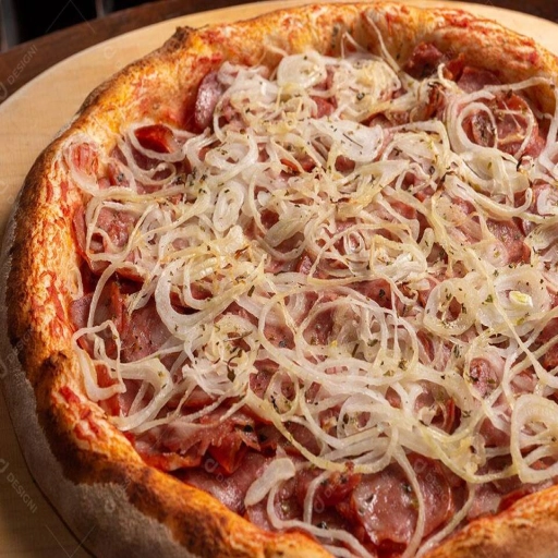 Saborosa e irresistível! Massa crocante, coberta com molho de tomate, fatias de calabresa temperadas, cebolas fatiadas,... Ver completo