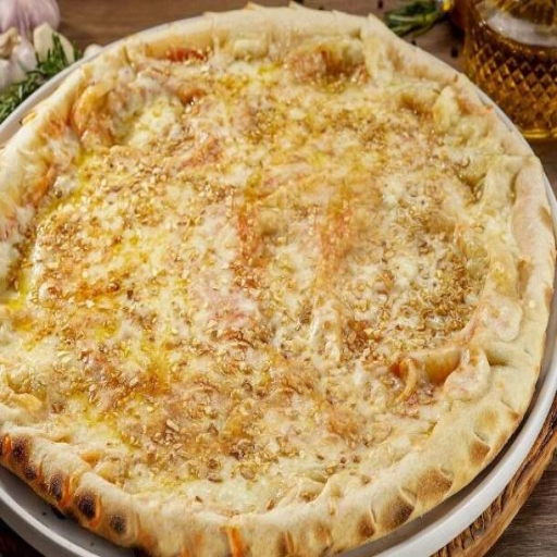 Uma deliciosa combinação de sabores doces e salgados! Massa crocante, coberta com queijo mussarela derretido e uma gen... Ver completo