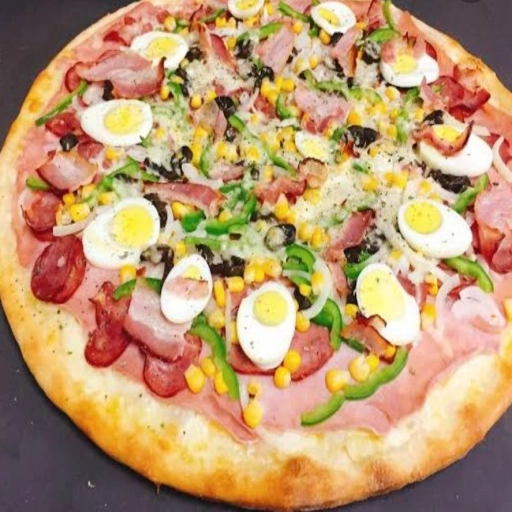 Pizza grande.Massa fina.Bem assada. 1/2 Frango com Catupiry 1/2 Portuguesa (Presunto,Ovos, Ervilha, Palmito, Cebola e Mu... Ver completo